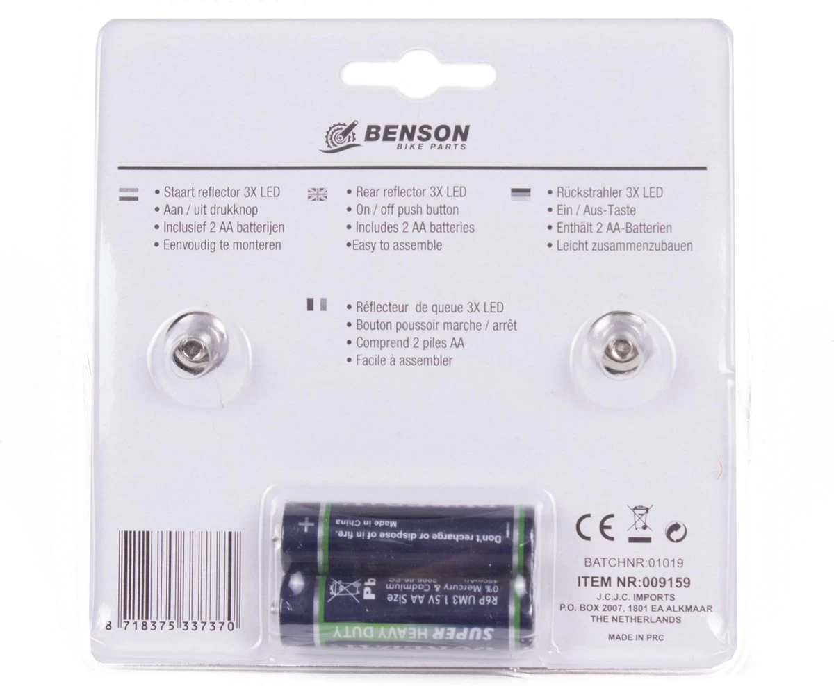 Benson Achterlicht / Staartreflector – Voor Fiets – 3x LED – Universeel – Batterijachterlicht Met Reflector