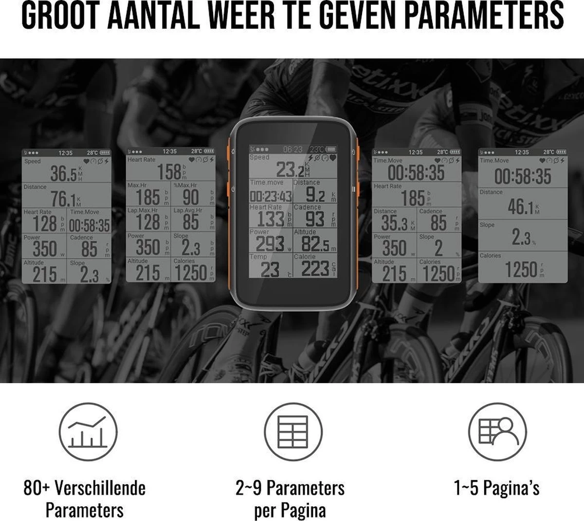 LHP BC200 Fietscomputer Draadloos 3-in-1 Bundel – Hartslagmeter Borstband – Cadanssensor – Kilometerteller GPS – 80+ Functies – 2.4 Inch LCD Scherm – Bluetooth & ANT+