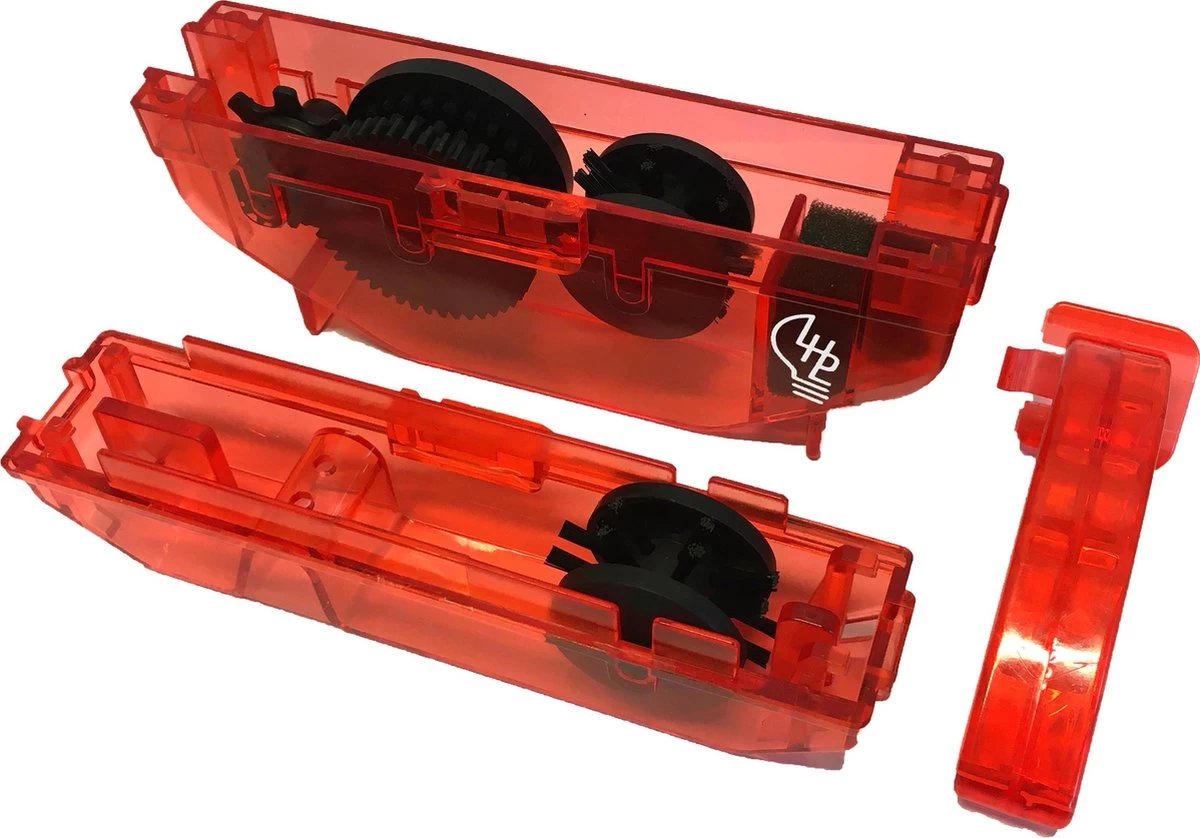 De LHP fietsketting reiniger maakt de fietsketting op een handige manier schoon, zonder de ketting van de fiets te demonteren. De reiniger heeft een aantal roterende borsteltjes om de ketting grondig schoon te maken. Niet alleen aan de buitenkant, maar ook tussen de schakels in. Daarnaast heeft het apparaat een groot reservoir voor schoonmaakmiddelen. Een fietsketting die niet schoon wordt gemaakt, gaat na enige tijd roesten. Hierdoor is het schoonmaken en onderhouden van de fietsketting essentieel. Vooral wanneer je een open kettingkast hebt. Door een schone fietsketting verleng je de levensduur van de ketting en de tandwielen van de fiets. Ook zal het versnellingssysteem nauwkeurig schakelen.