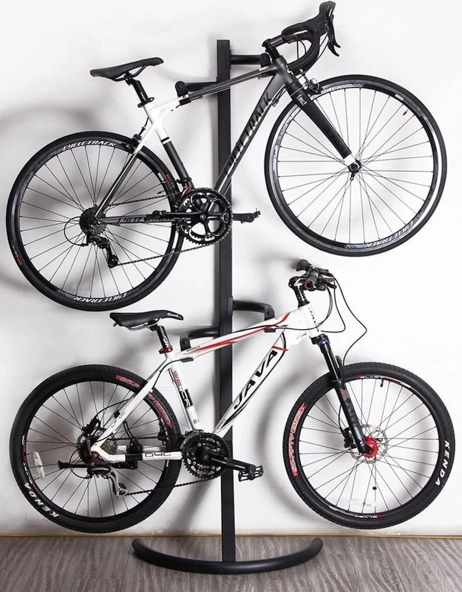 Fiets ophangsysteem voor 2 fietsen. Sterk Staand Fietsenrek om 2 fietsen op te hangen boven elkaar.