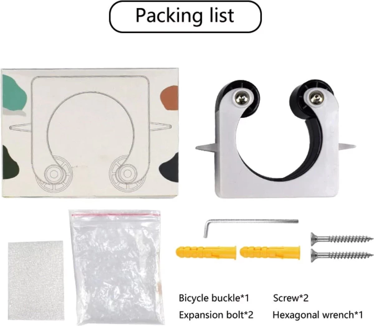 Simple installatie: geperforeerde parking rack, anti-collision siliconen, maat verstelbaar, snelle installatie. De haak is eenvoudig te installeren op elk type muur of verticale oppervlak, zonder ingewikkelde installatie stappen, gewoon compleet een paar stappen