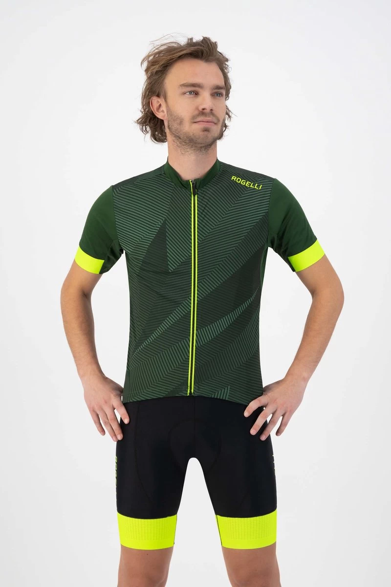 Rogelli Dusk – Fietsshirt Korte Mouwen – Heren – Maat XL – Groen, Fluor-Geel