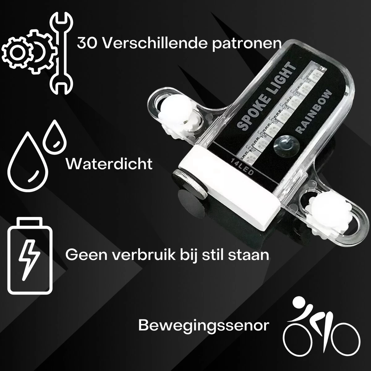 Waauwwwwww. Dat is wat mensen denken wanneer jij voorbij fietst. Deze spaakverlichting van Udem is het product om op te vallen in het donker. Het product kan tot wel 30 verschillende patronen produceren, dus je kan keer op keer een ander patroon kiezen.