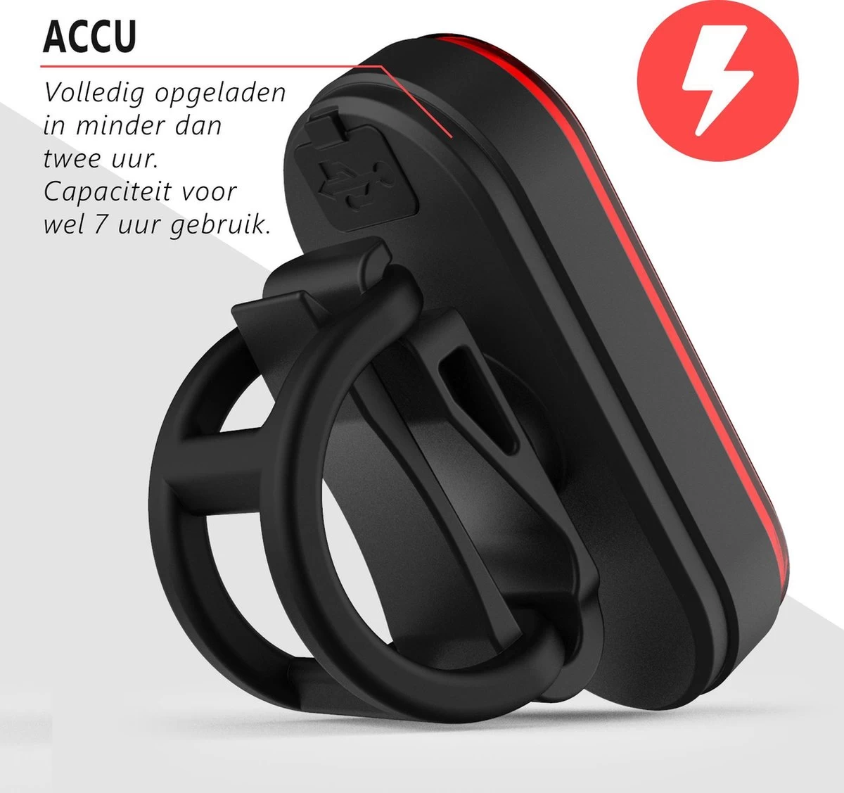 - Oplaadbaar achterlicht (6,2 x 2,8 x 3,1)